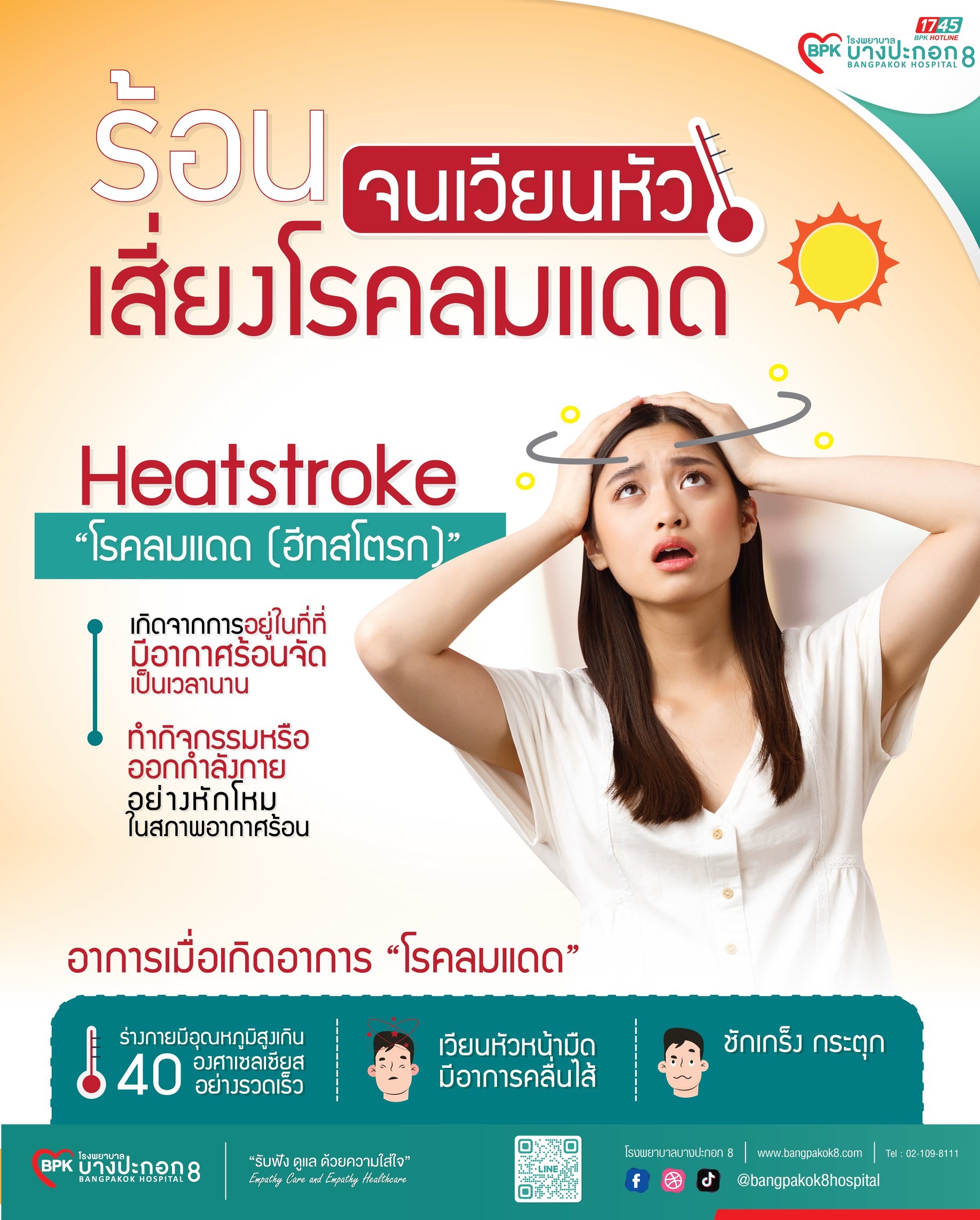 โรคลมแดด หรือฮีทสโตรก เป็นภัยร้ายใกล้ตัวที่ต้องคอยระวังในช่วงฤดูร้อน หรืออากาศร้อนจัด ซึ่งปัจจุบันประเทศไทยมีสภาพอากาศที่ร้อนขึ้นในทุกๆปี ดังนั้นควรเฝ้าระวัง เตรียมตัวไม่ให้เกิดปัจจัยเสี่ยงที่ก่อให้เกิดโรคลมแดดได้ อย่างเช่น การไม่ออกไปทำกิจกรรมกลางแจ้งในอากาศร้อนจัดเป็นเวลานาน ผู้ที่เป็นกลุ่มเสี่ยงควรเรียนรู้วิธีการป้องกันเพื่อไม่ให้เกิดภาวะโรคลมแดด หรือหากมีอาการควรเข้าช่วยหรือเบื้องต้น และเรียกรถพยาบาล 1669 หรือ 1745 (โรงพยาบาลในเครือบางปะกอก)