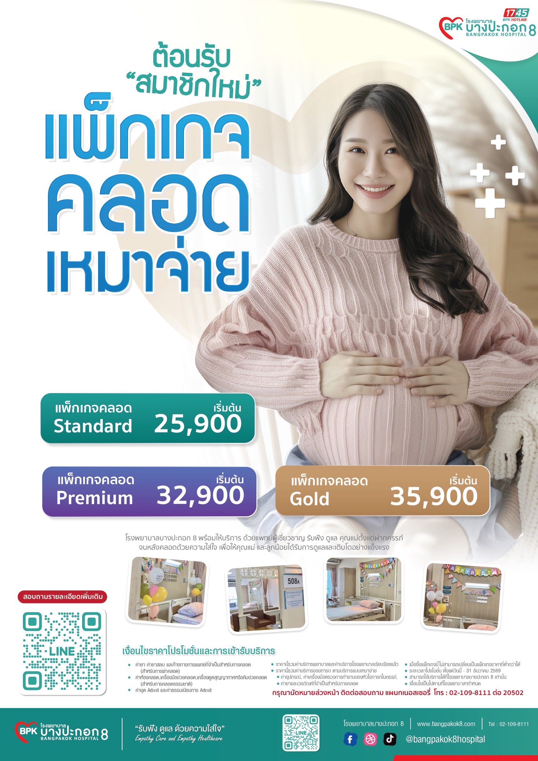 สนใจบริการคลอดแบบเหมาจ่าย แจ้งนัดหมาย Add Line : https://lin.ee/cbtHx5L / ID : @bpk8