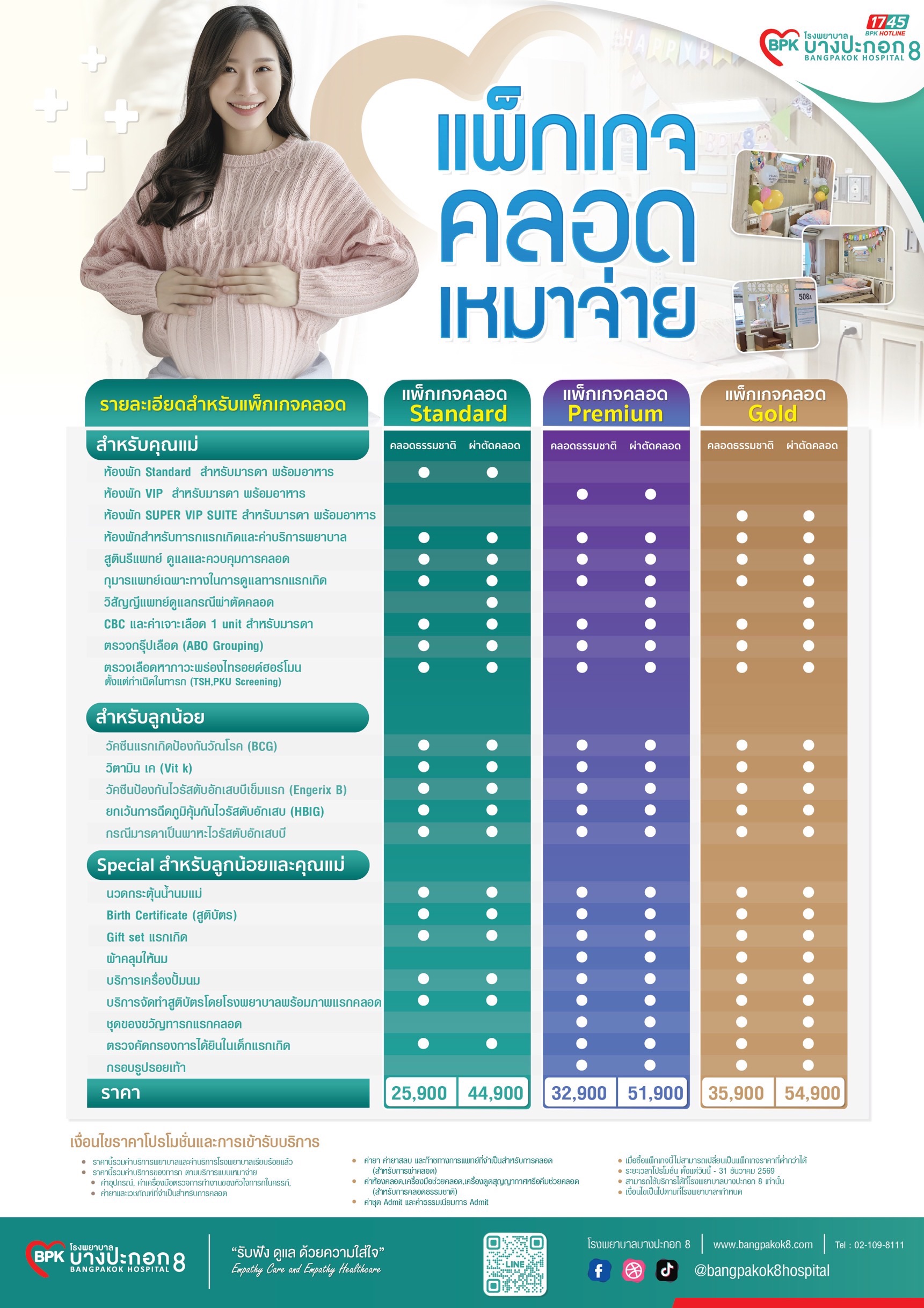 "คุณแม่อุ่นใจ ต้อนรับสมาชิกใหม่ของครอบครัว" แพ็กเกจคลอดบุตรแบบคลอดเหมาจ่าย พร้อมให้การดูแลคุณแม่และลูกน้อยตลอด 24 ชม.หมดความกังวลสำหรับการคลอดที่โรงพยาบาลบางปะกอก 8