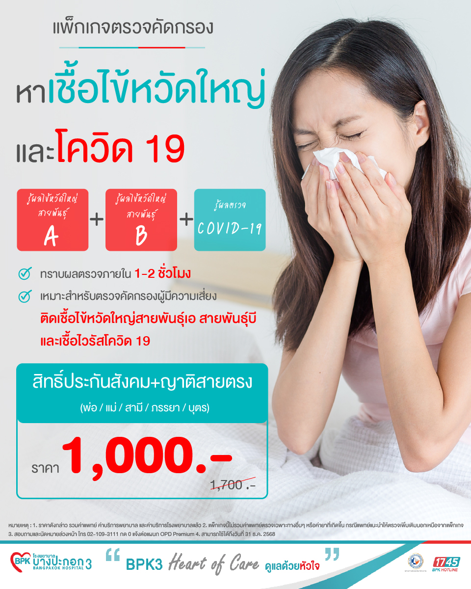 แพ็กเกจตรวจคัดกรองหาเชื้อไข้หวัดใหญ่และโควิด 19 (สิทธิ์ประกันสังคมบางปะกอก3)