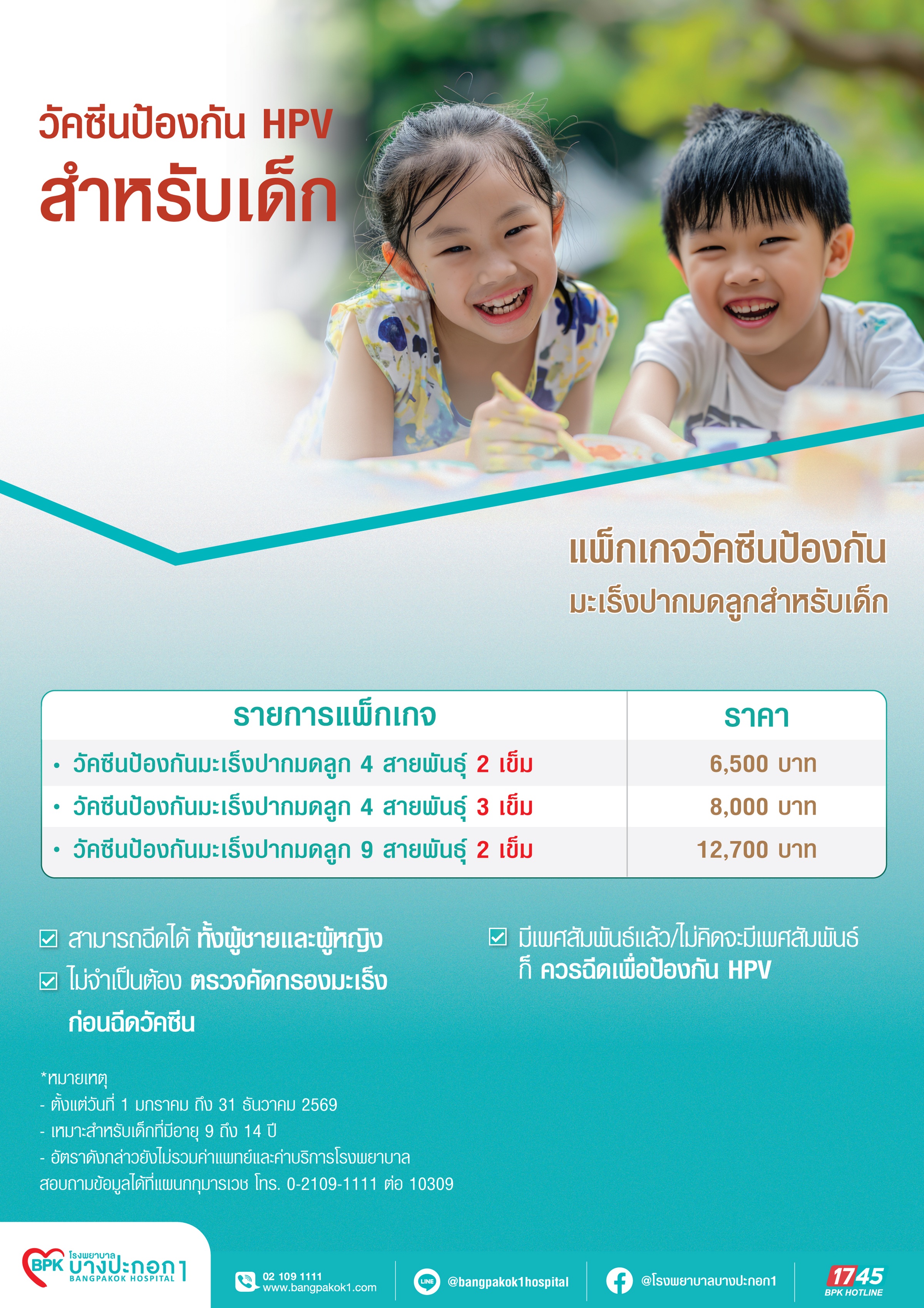 วัคซีนป้องกันมะเร็งปากมดลูก 9 สายพันธุ์ 2 เข็ม สำหรับเด็ก ที่ โรงพยาบาลบางปะกอก 1