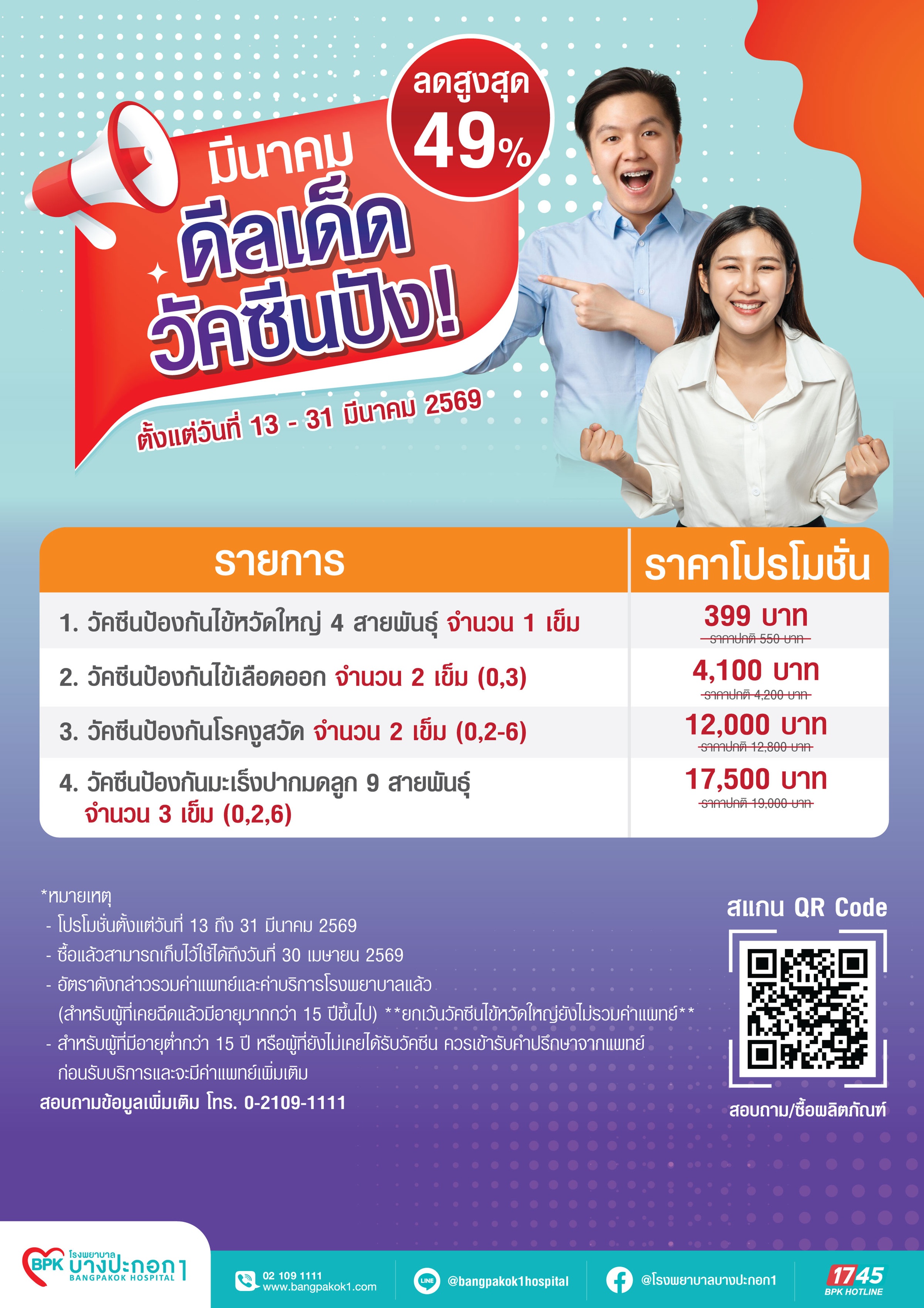 วัคซีนป้องกันโรคงูสวัด 13-31 มี.ค. 2569 EXP. 30 เม.ย. 2569 ที่ โรงพยาบาลบางปะกอก 1