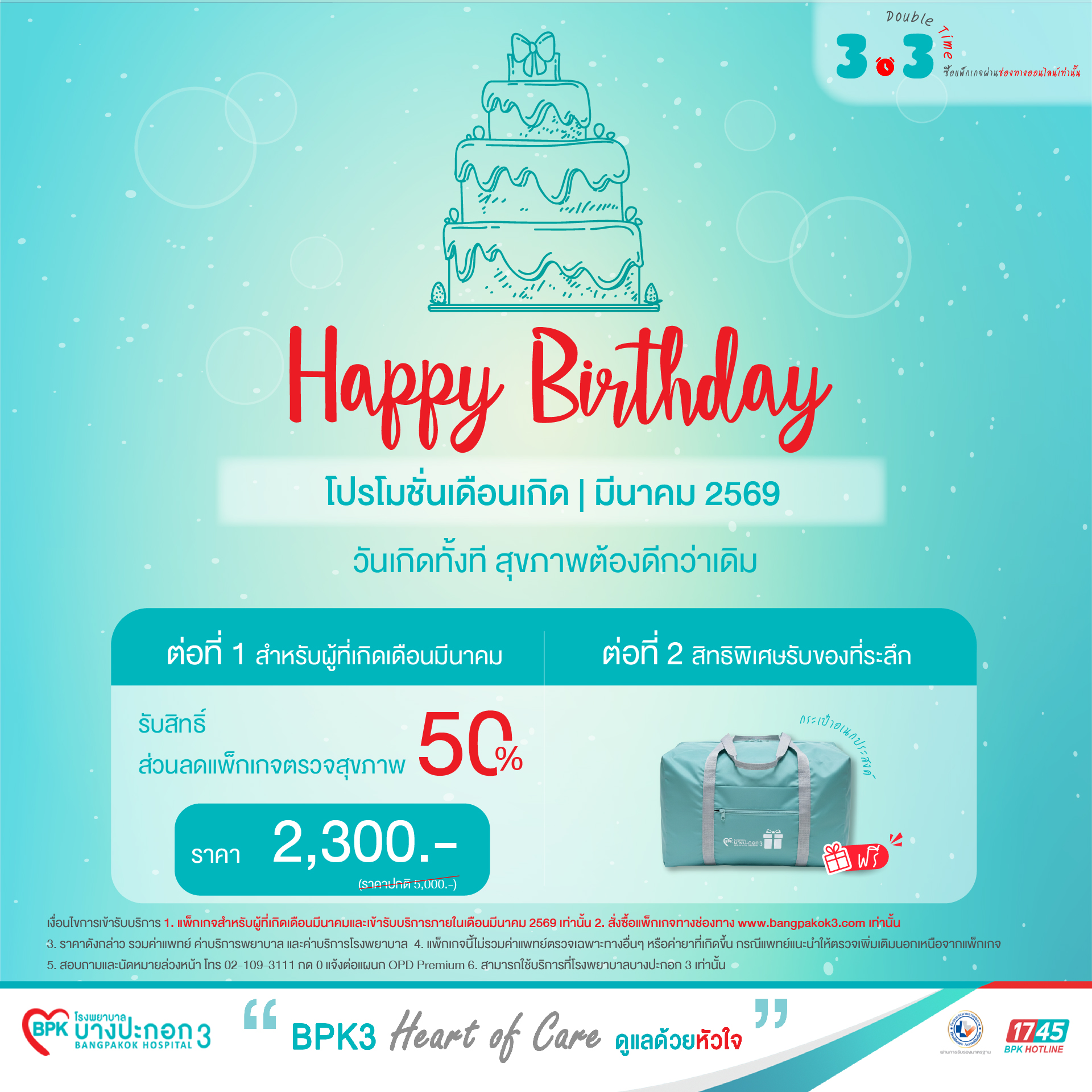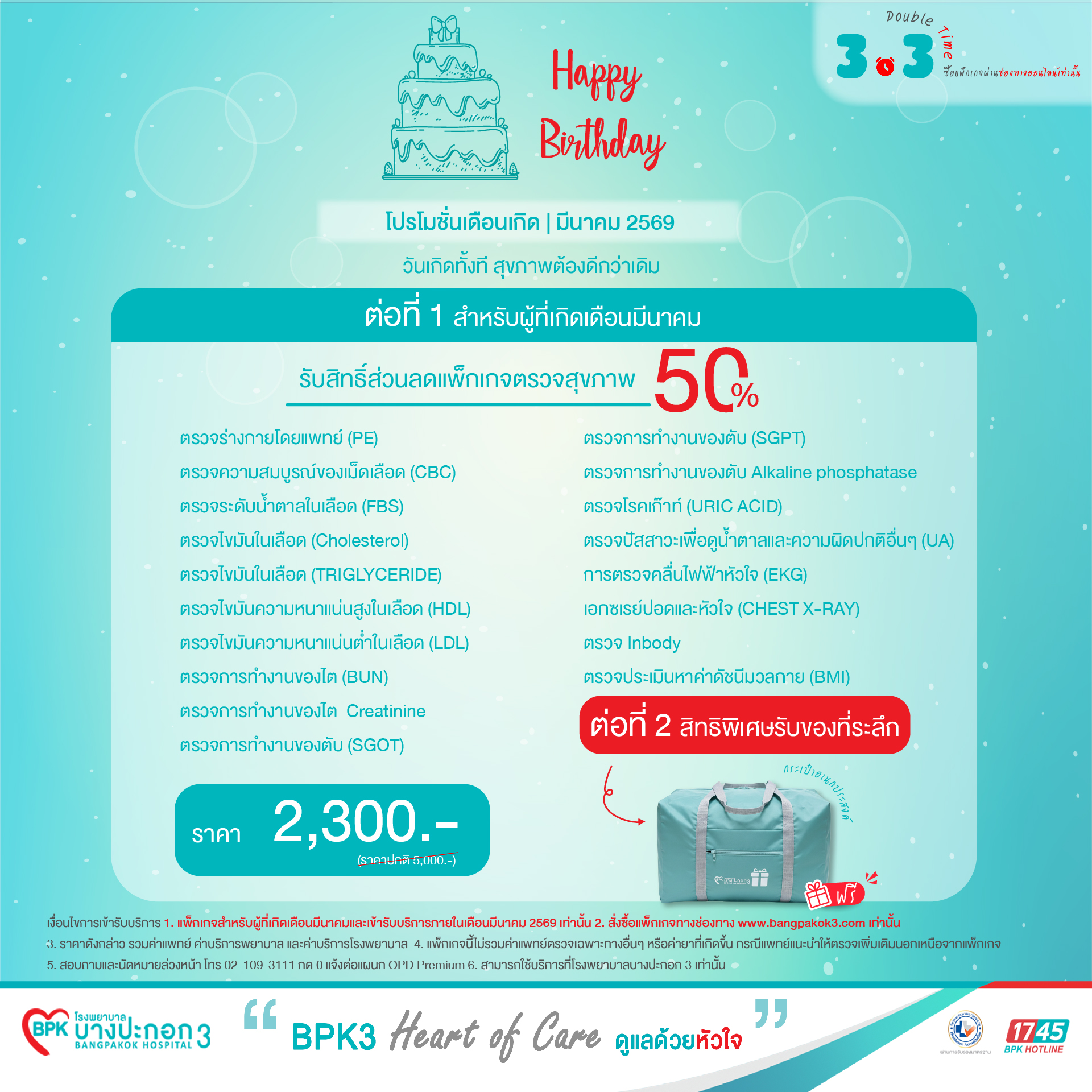 *โปรโมชัน สำหรับผู้ที่เกิดเดือน มีนาคม ที่ซื้อแพ็กเกจ และตรวจสุขภาพเดือนนี้เท่านั้น