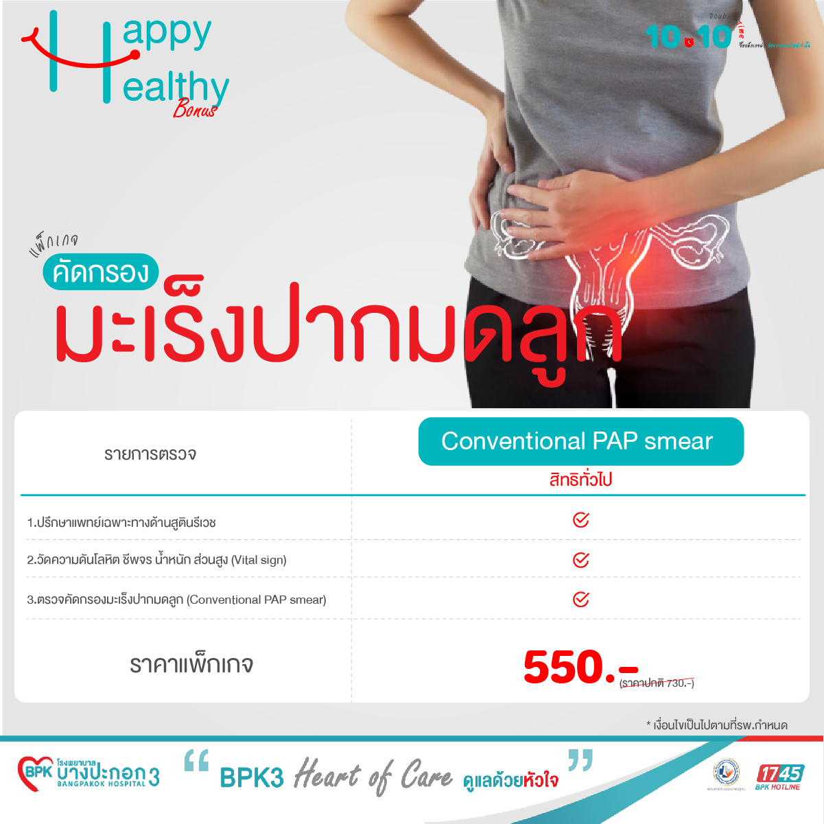 แพ็กเกจคัดกรองมะเร็งปากมดลูก (CONVENTIONAL PAP Smear)