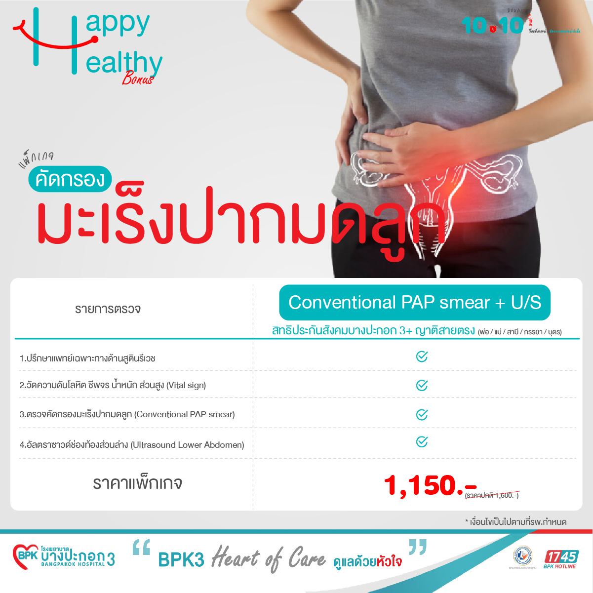 แพ็กเกจคัดกรองมะเร็งปากมดลูก (CONVENTIONAL PAP Smear + U/S)