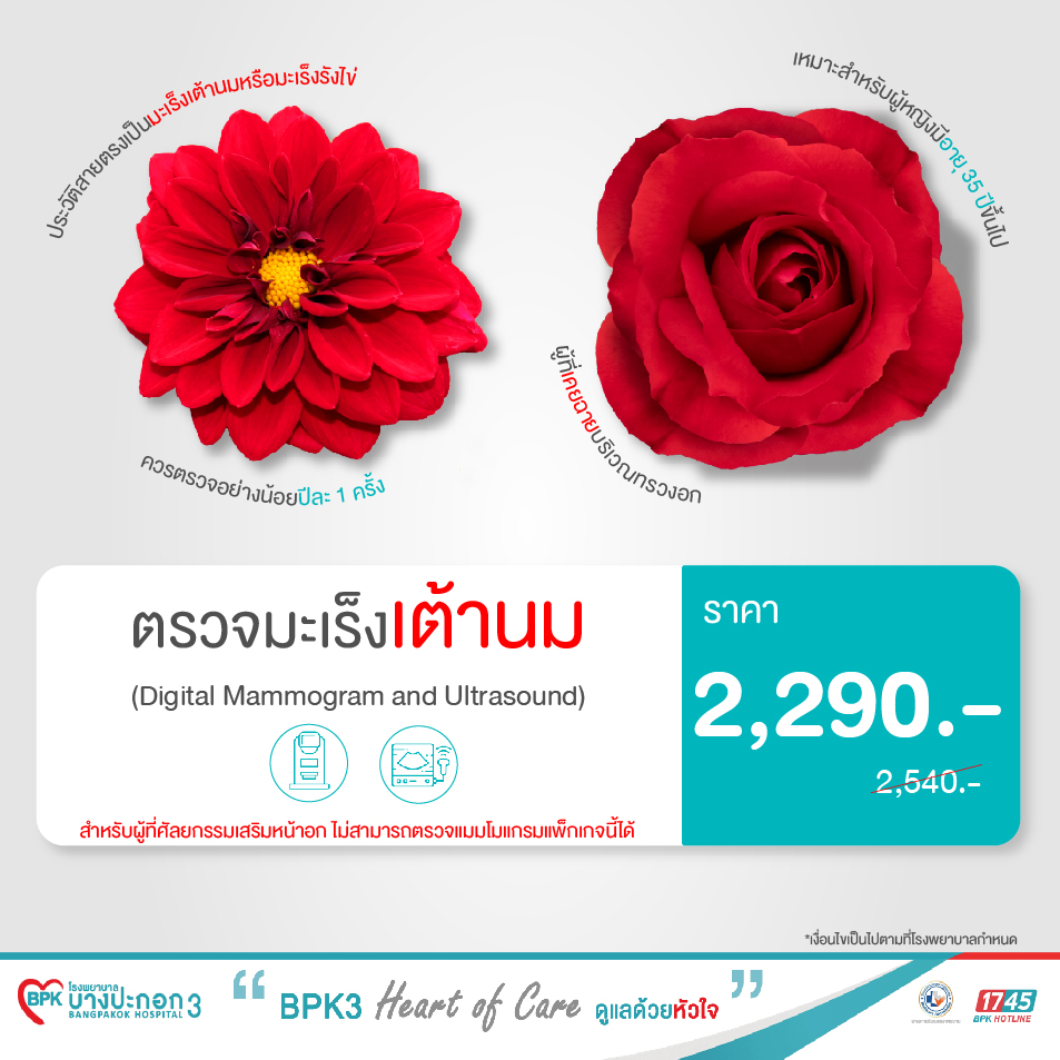 แพ็กเกจ คัดกรองมะเร็งเต้านม Digital Mammogram and Ultrasound