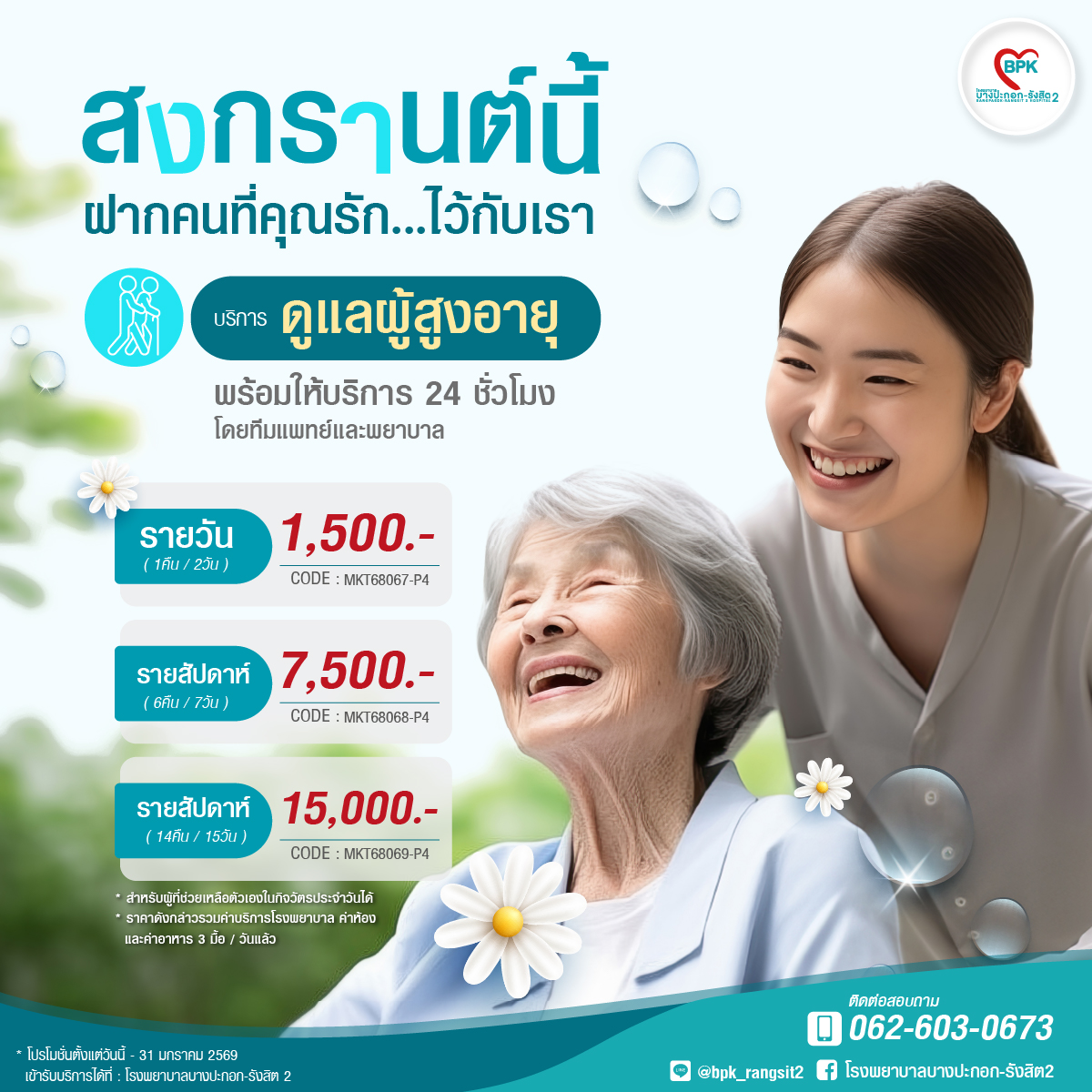 2026 โปรโมชั่นเดือน 4 - แพ็กเกจดูแลผู้สูงอายุ (15วัน 14คืน) - โรงพยาบาลบางปะกอกรังสิต2