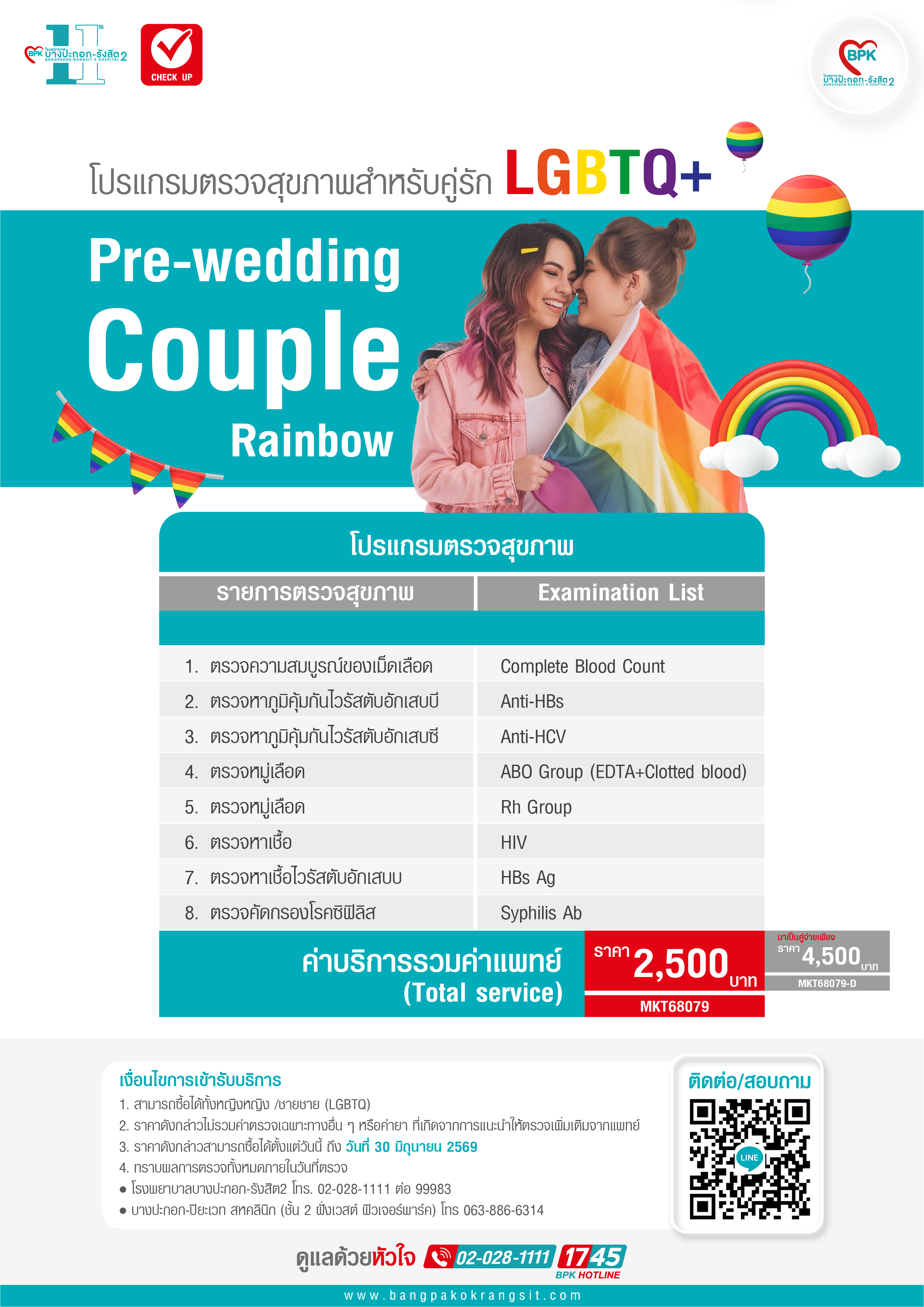 2026 โปรแกรม (มาเป็นคู่) ตรวจสุขภาพสำหรับคู่รัก LGBTQ+ (Pre-Wedding Couple Rainboe) ที่ โรงพยาบาลบางปะกอก รังสิต 2