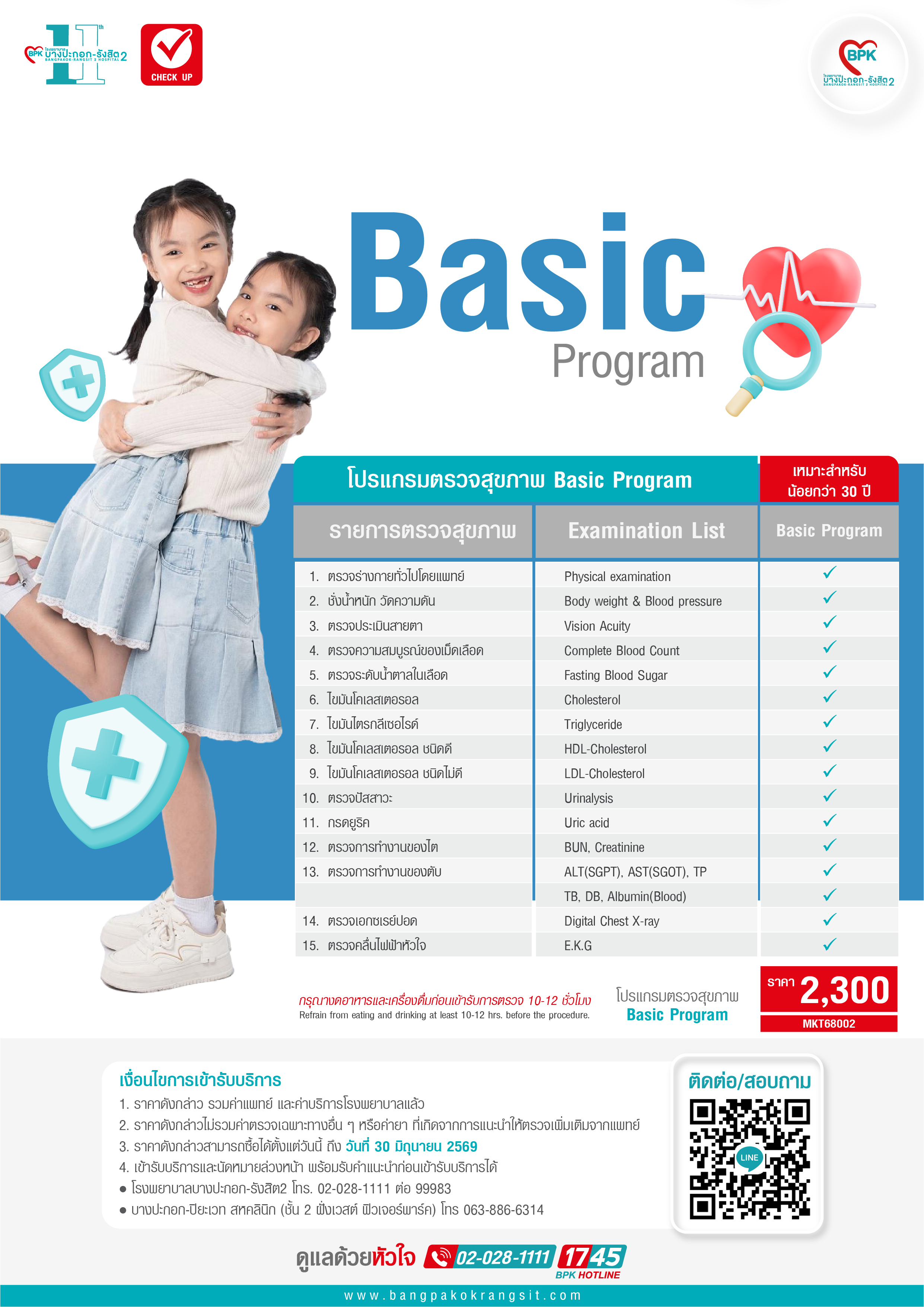 โปรแกรมตรวจสุขภาพ Basic สำหรับอายุน้อยกว่า 30 ปี ที่ โรงพยาบาลบางปะกอก-รังสิต2