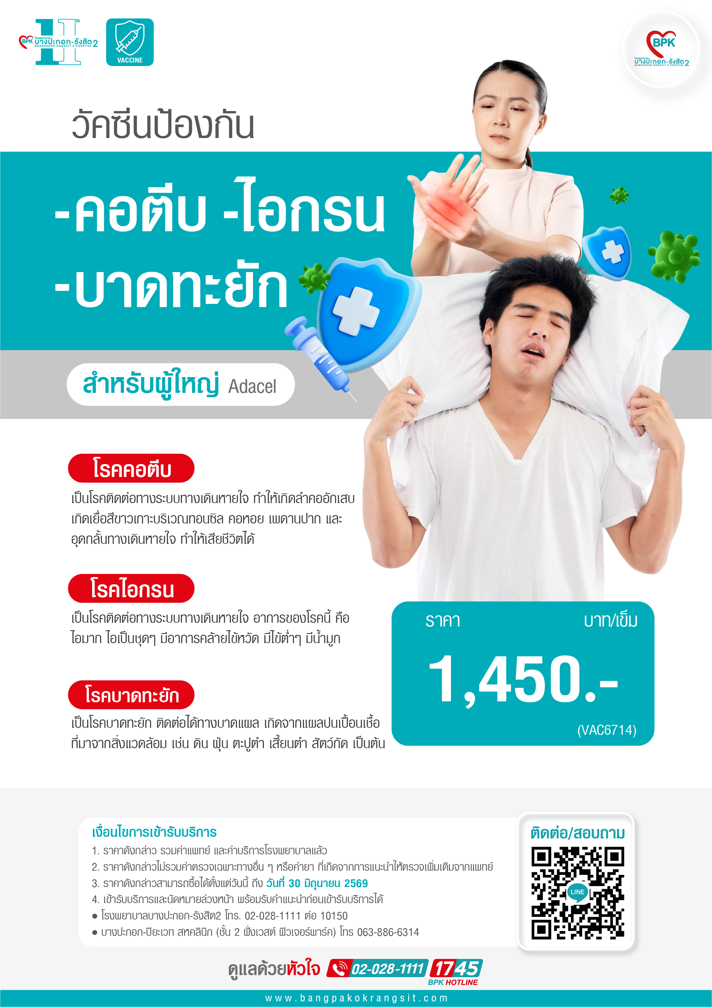 2026 วัคซีนป้องกันโรคคอตีบ ไอกรน บาดทะยัก (1เข็ม) ที่โรงพยาบาลบางปะกอก-รังสิต2