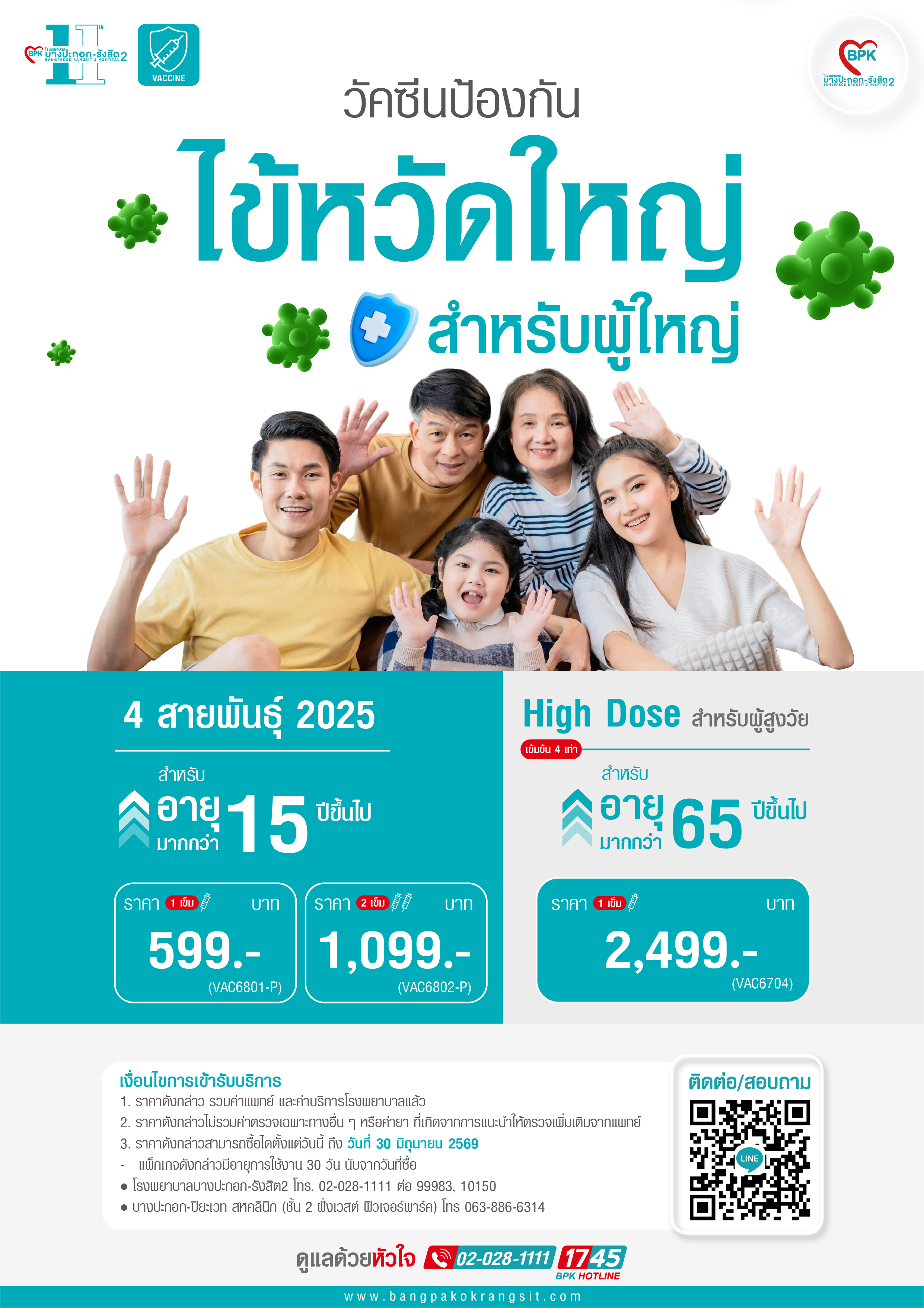 2026 วัคซีนป้องกันไข้หวัดใหญ่ HIGH DOSE 1 เข็ม (สำหรับ 65 ปี ขึ้นไป) ที่โรงพยาบาลบางปะกอก รังสิต 2