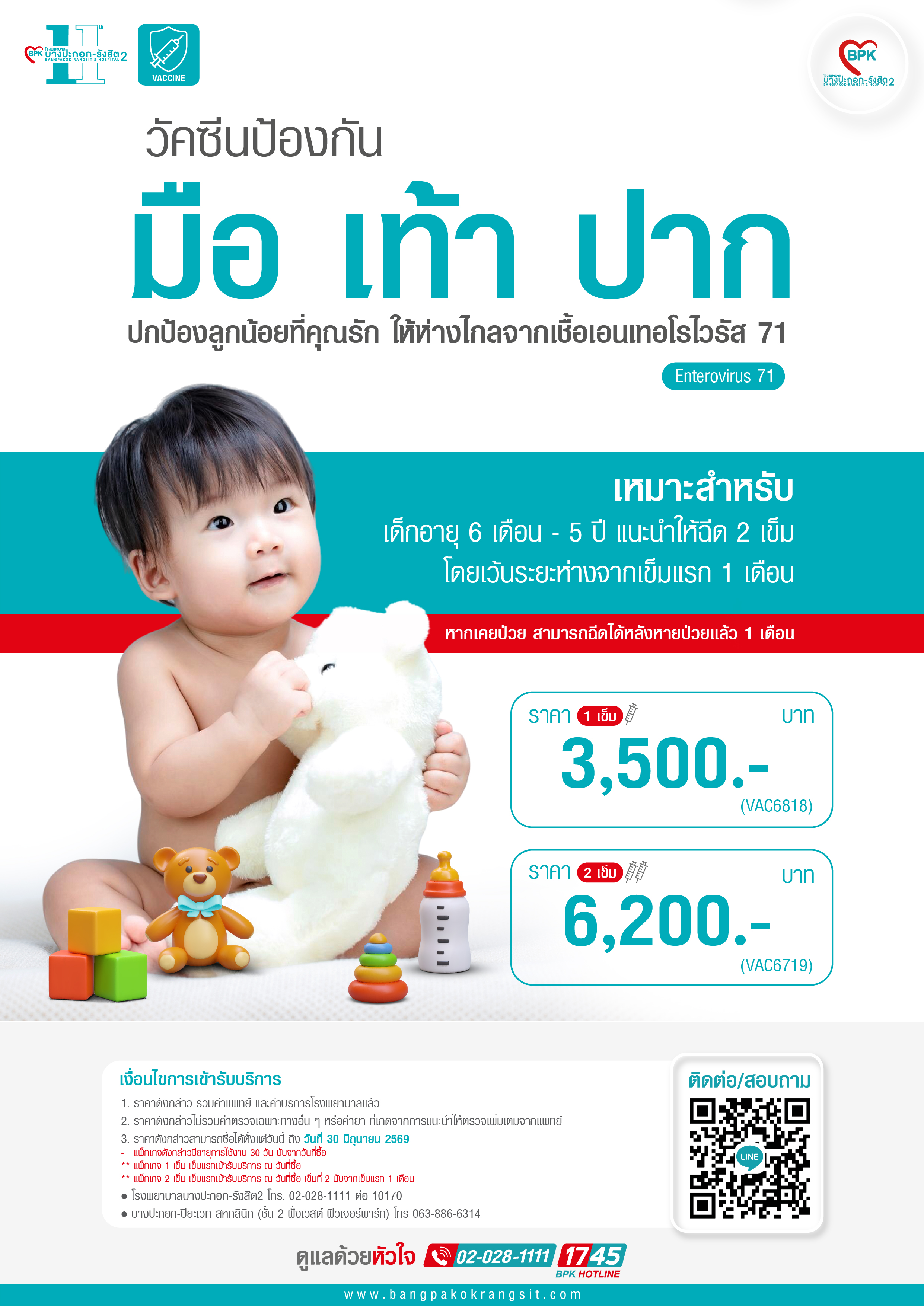 2026 วัคซีนป้องกัน มือ เท้า ปาก (สำหรับเด็ก ตั้งแต่ 6 เดือน - 5 ปี) 1 เข็ม ที่ โรงพยาบาลบางปะกอก รังสิต 2